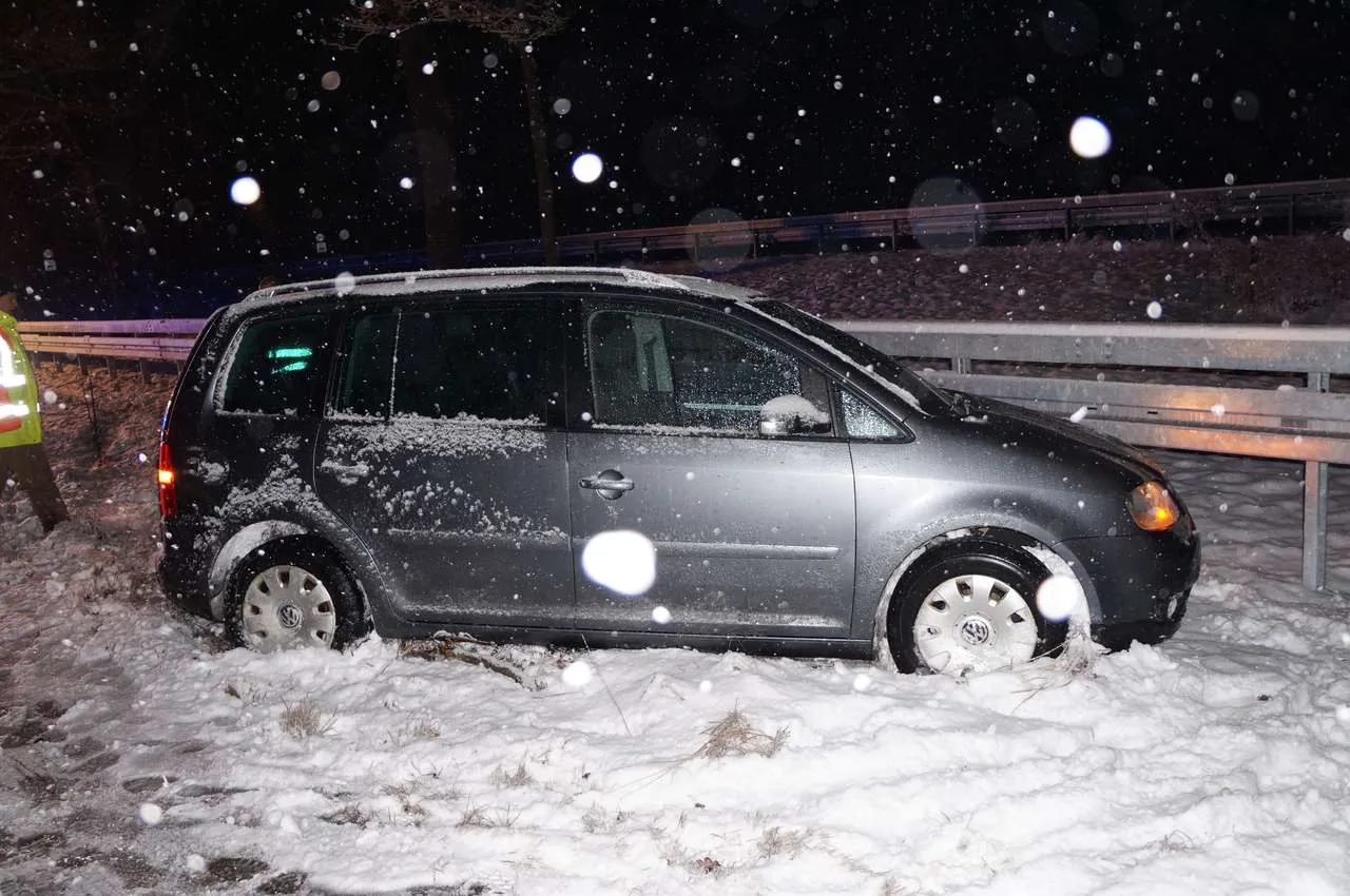 Ein PKW war bei starken Schneefall von der Fahrbahn abgekommen. Am Auto selbst entstand nur geringer Schaden, der Fahrer konnte die Fahrt selbst fortsetzten.